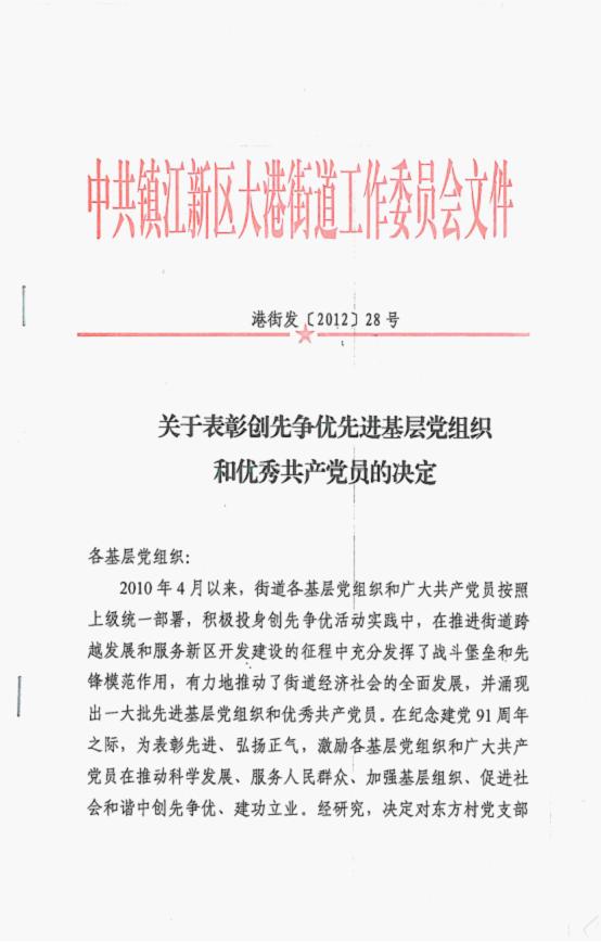 热烈庆祝我公司获得“先进基层党组字称号”